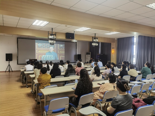 2025年9月3日上午,江汉大学商学院全体在校教师在J01A501教室,集中收看了北京天安门广场举行的“纪念中国人民抗日战争暨世界反法西斯战争胜利80周年大会”实况直播。