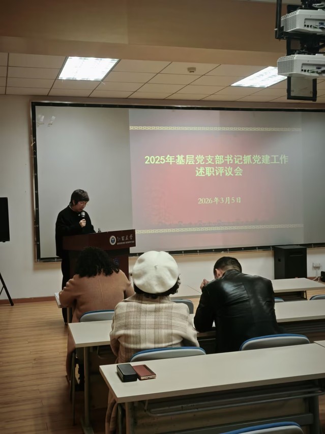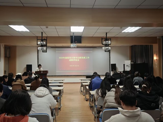 3月5日中午,商学院在J01A501召开2025年度基层党组织书记抓党建工作述职评议会议。学院党委班子成员、各支部书记、副书记、支部委员和师生党员代表共计41人参加评议会。